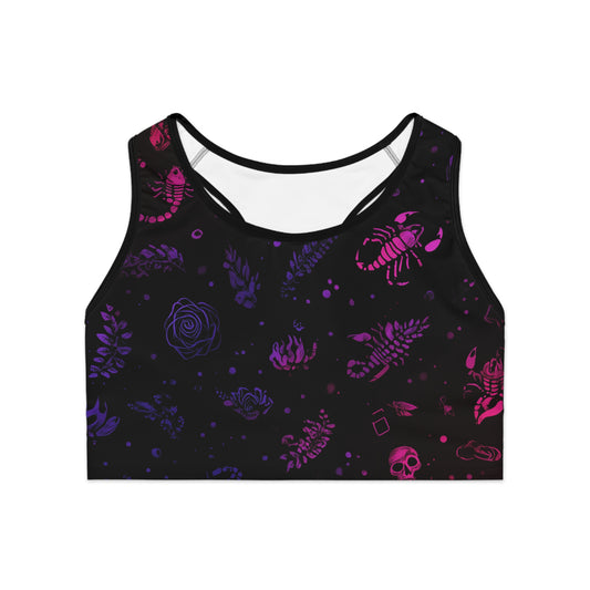 Vibrant Athletic Sports Bra with Gothic Aesthetic, Activewear, Workout Top, Gym Essentials, Fitness Apparel, Unique Fitness Gift