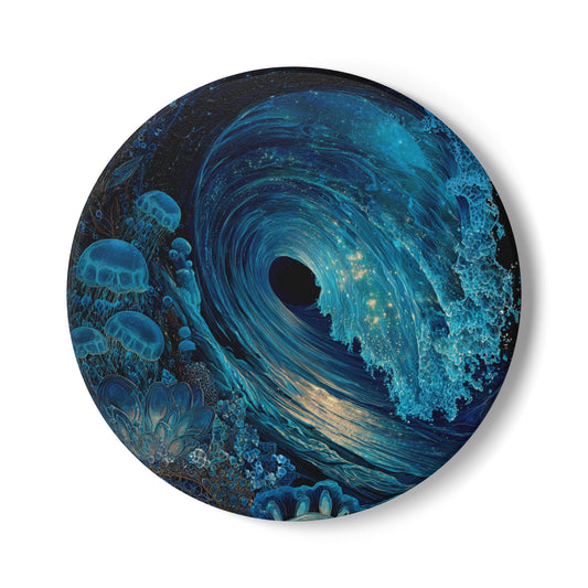 Water Element Ocean Wave Ceramic Coaster Set - Elemental Flow Home Decor, Aquatic Energy Gift, Celestial Tide Design