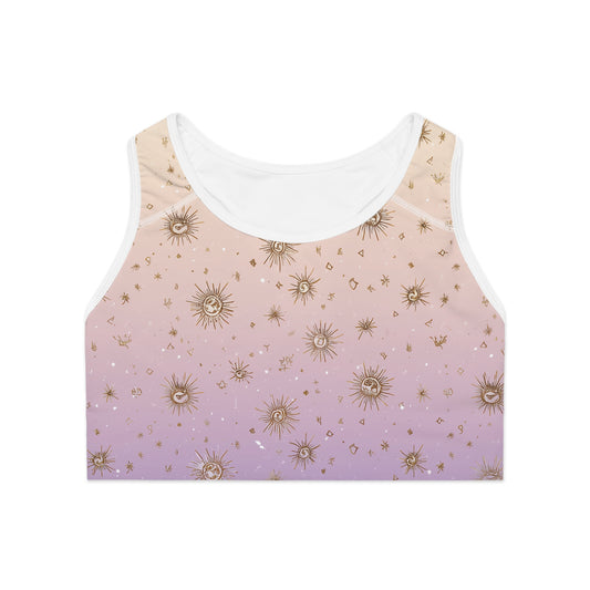 Boho Sunburst Sports Bra, Workout Top, Yoga Bra, Fitness Apparel, Athleisure Wear, Activewear for Women