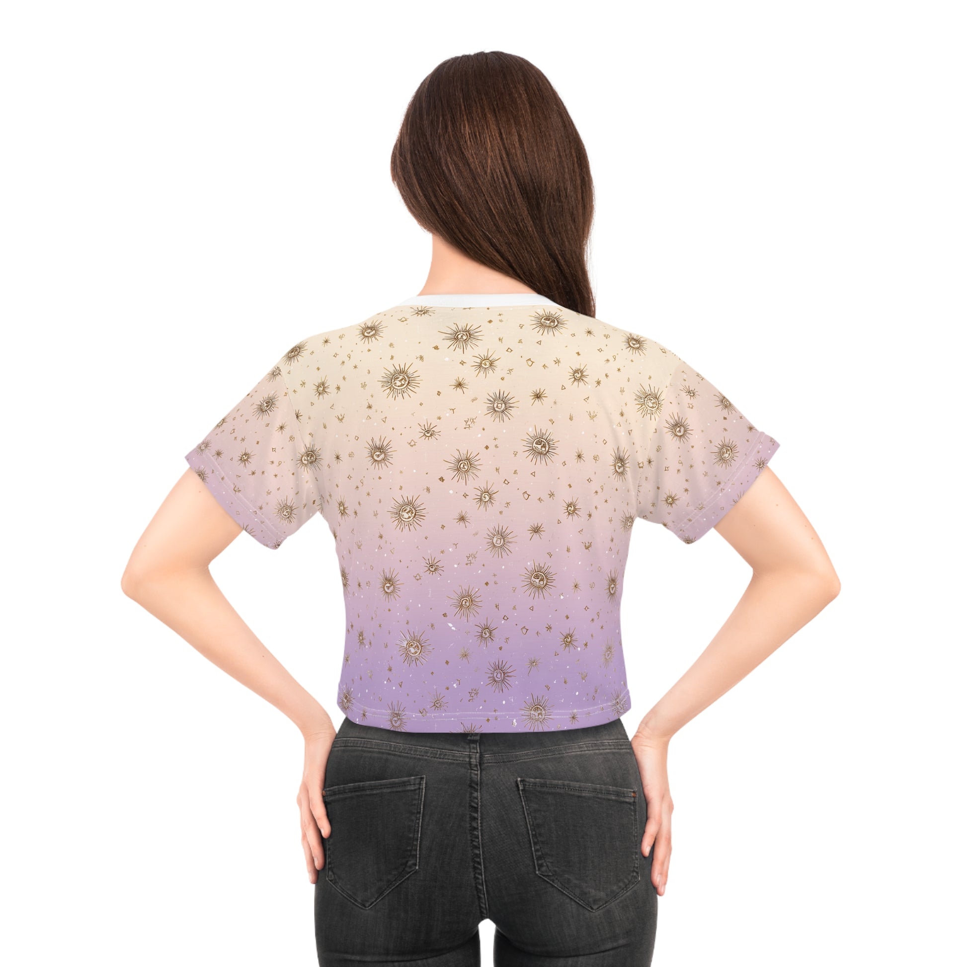 Celestial Crop Tee, Vintage Style Crop Top, AOP Summer Tee, Festival Wear, Bohemian T-Shirt, Astrology Fashion
