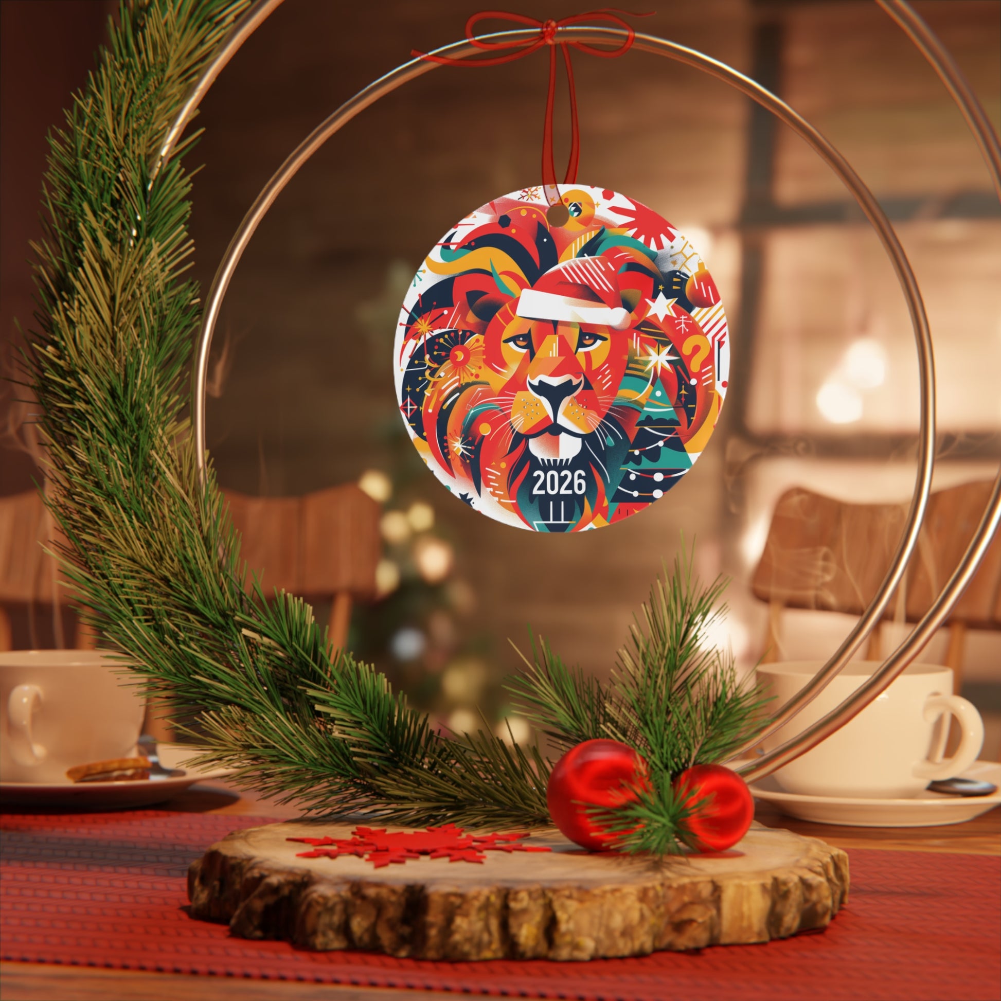 These Leo metal ornaments feature vibrant colors and unique shapes like Bell, Tree, Round, and Oval. Made from durable aluminum, they are perfect for adding a pop of color to your Christmas tree. Ideal for Leo zodiac enthusiasts and those looking to personalize their holiday decorations. Product features - Hole for hanging string with red ribbon included - Unique shapes - Bell, Tree, Round and Oval - Vibrant colors with crisp printing - Durable aluminum material - Print on both sides Care instructions - Clean by wiping with a soft, damp cloth.