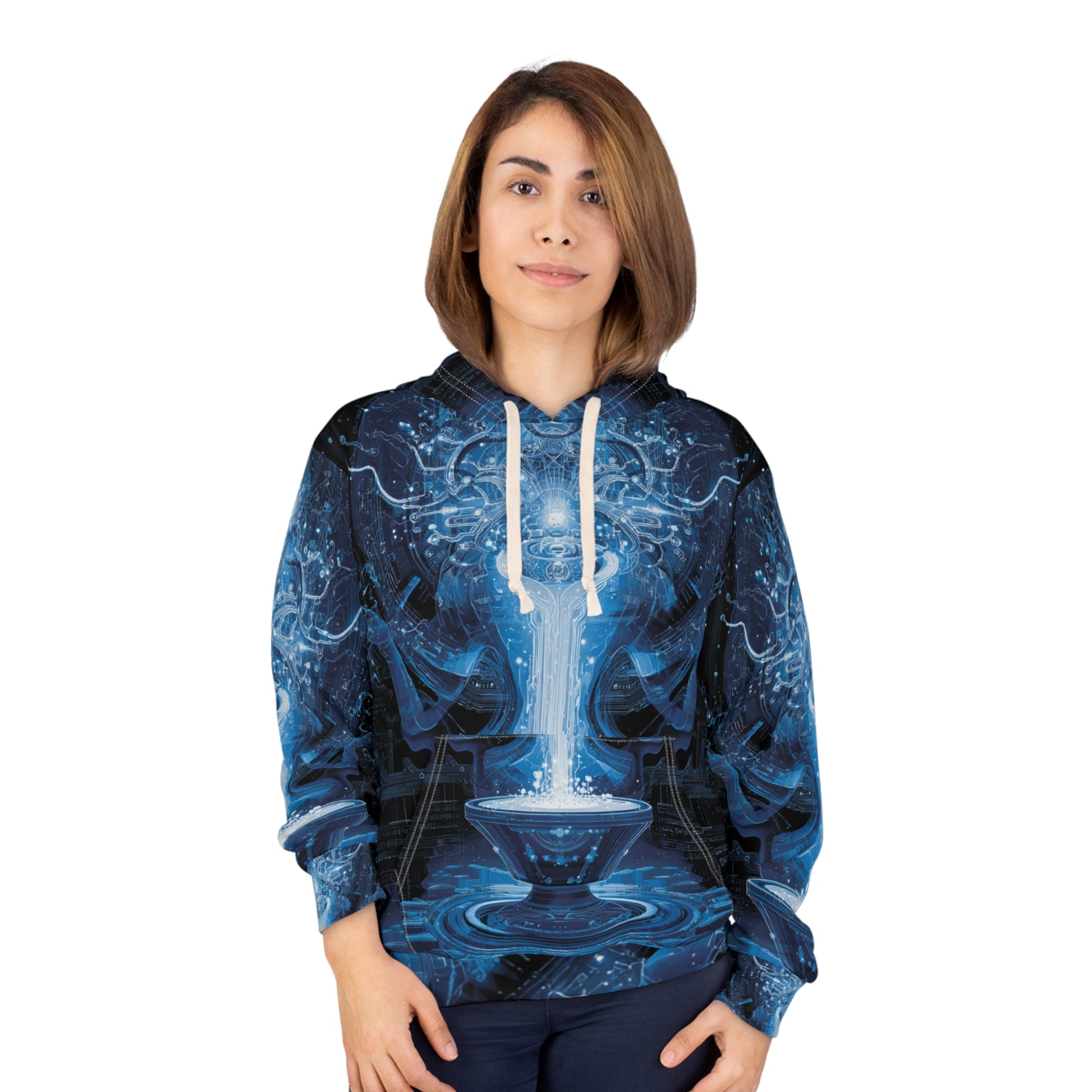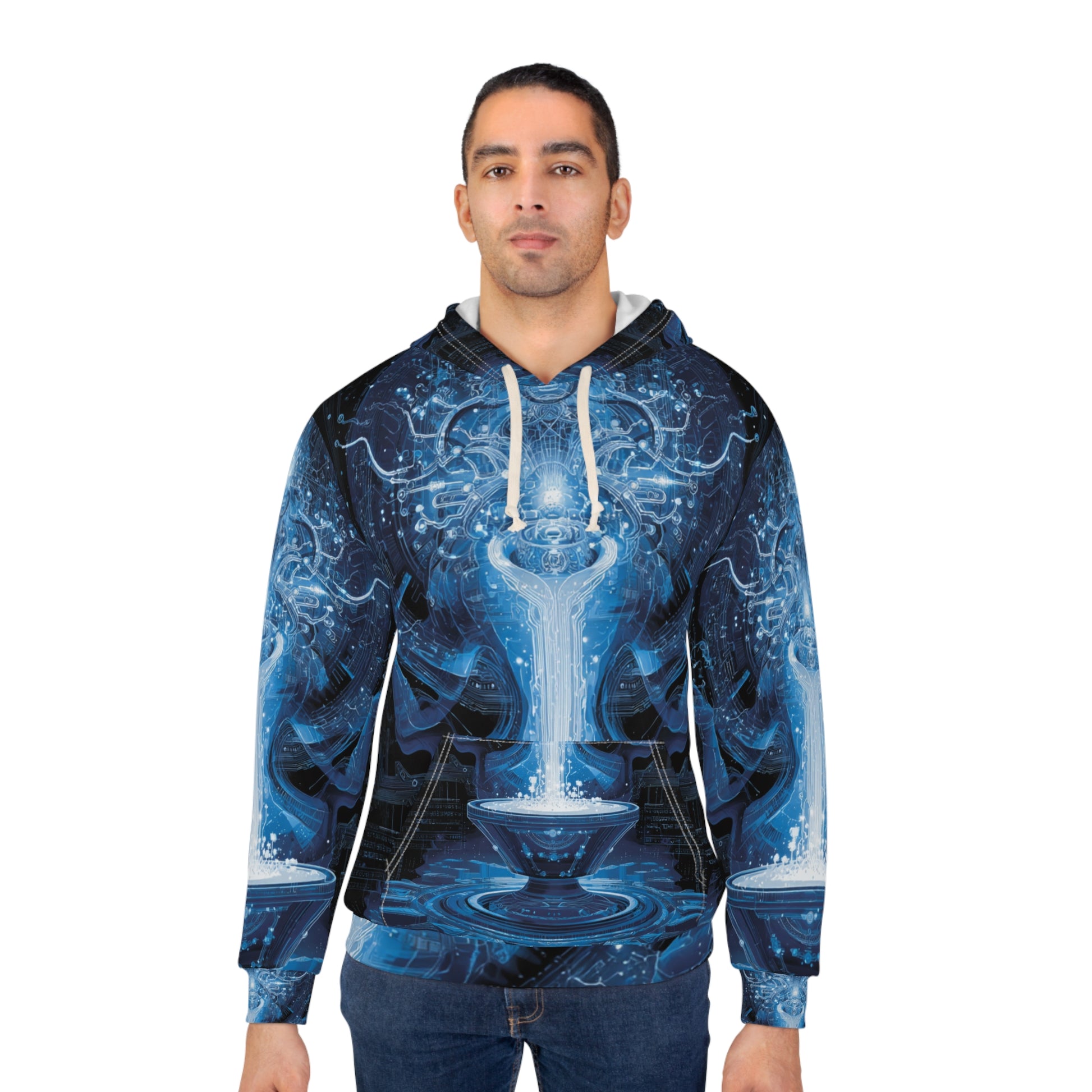 Perfect for air sign enthusiasts and astrology lovers, this captivating hoodie features mystical blue energy patterns that embody the innovative and humanitarian nature of Aquarius. The cosmic design represents the connection between celestial wisdom and progressive thinking.